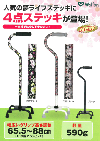 配送について ・通常、ご注文受付後、1〜2営業日で出荷いたします ・宅急便(ヤマト運輸/佐川急便/西濃運輸/福山通運/日本郵便)でお届けいたします メーカー ウェルファン >>同商品の【ブラック】はこちらから ▼四点杖(大型商品)は有料にて簡易ラッピングを承ります
