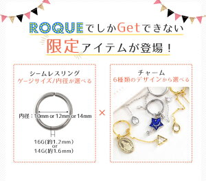 ボディピアス 16G 14G ROQUEオリジナルコンビネーション シームレスリングピアス(1個売り) オマケ革命